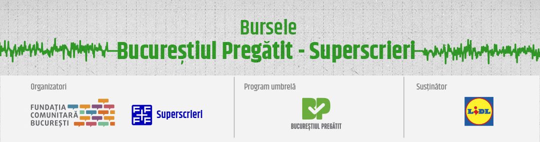 Urmărește materialele susținute prin Bursele Bucureștiul Pregătit – Superscrieri, pe care le-am oferit împreună cu Fundația Comunitară București, cu susținerea Lidl România; realizate sub mentoratul Emiliei Șercan: