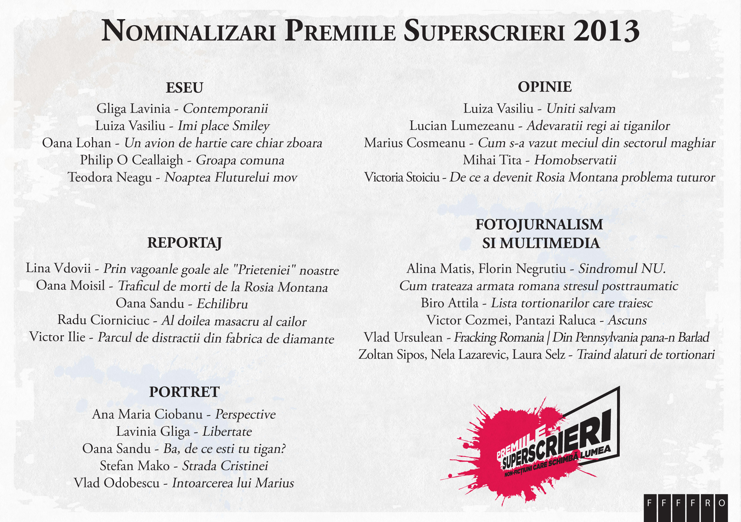 Listă nominalizați Premiile Superscrieri ediția a treia, 2013