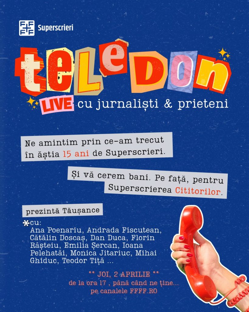 ☎️ Teledon. De cerut bani pentru jurnalismul independent. Pe 2 aprilie, de la ora 17:00, cât ne ține.
